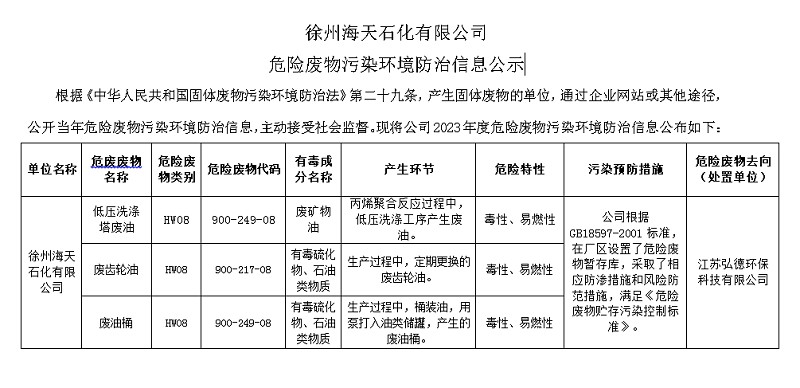 徐州J9集团官方网站石化有限公司 危险废物污染环境防治信息公示